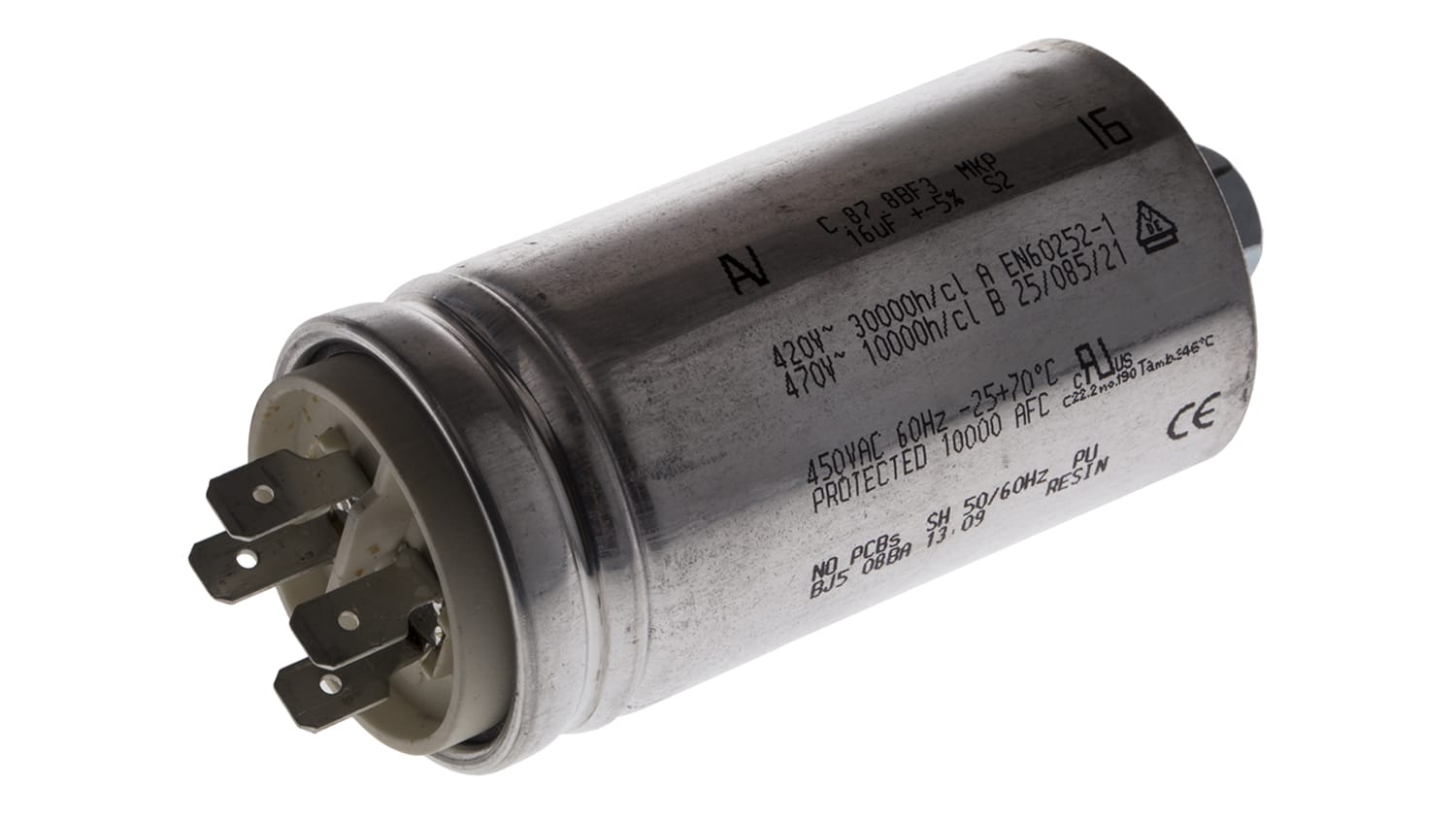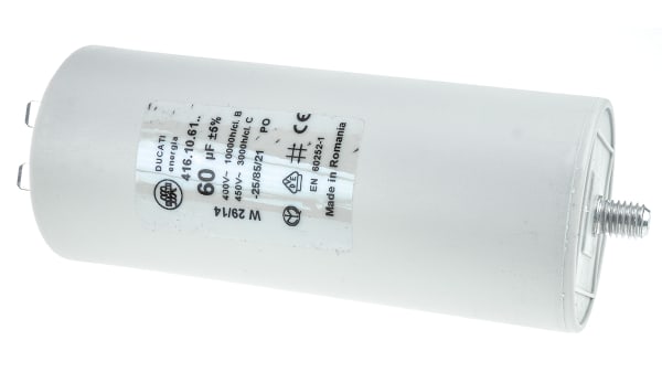 4 16 10 61 64 Ducati Energia 4 16 10 Polypropylene Film Capacitor 450v Ac 5 60mf Stud Mount Rs Components